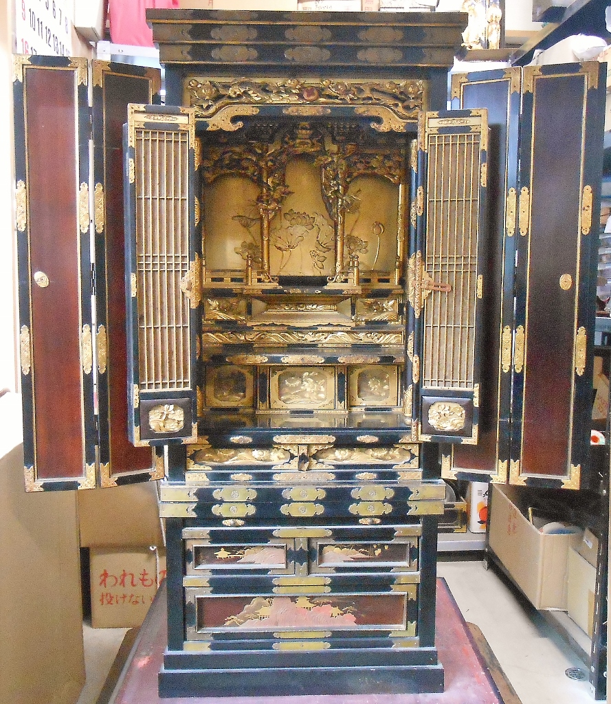 【朝日町N様】7代続くお仏壇と仏具を修復。くすんでしまった蒔絵も鮮やかによみがえりました。