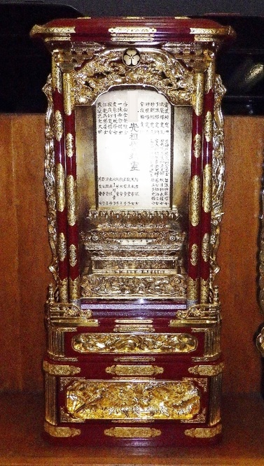 【山形市T様】旦那様のご不幸を機に、朱塗の厨子を修復し、周りと高さをそろえるために製作した増台に載せました。