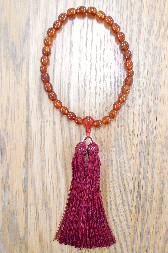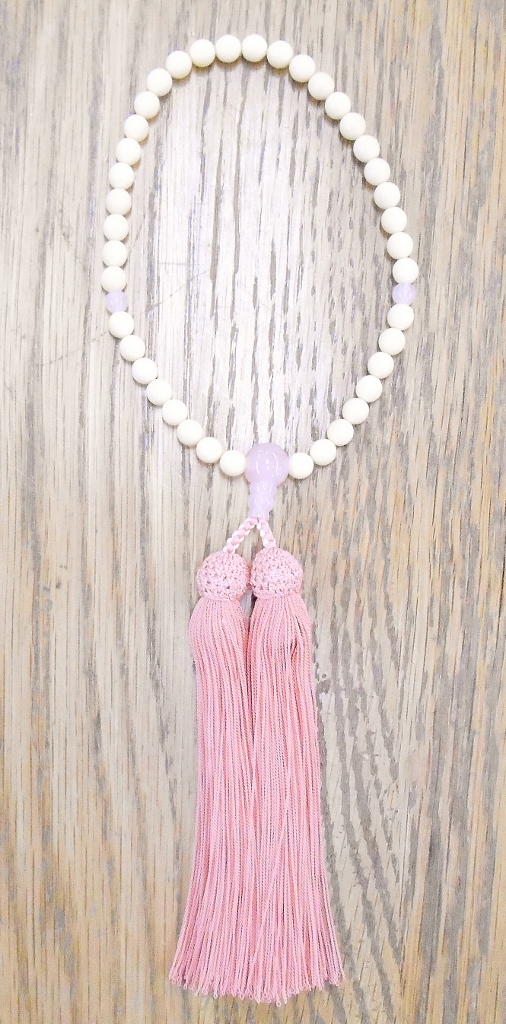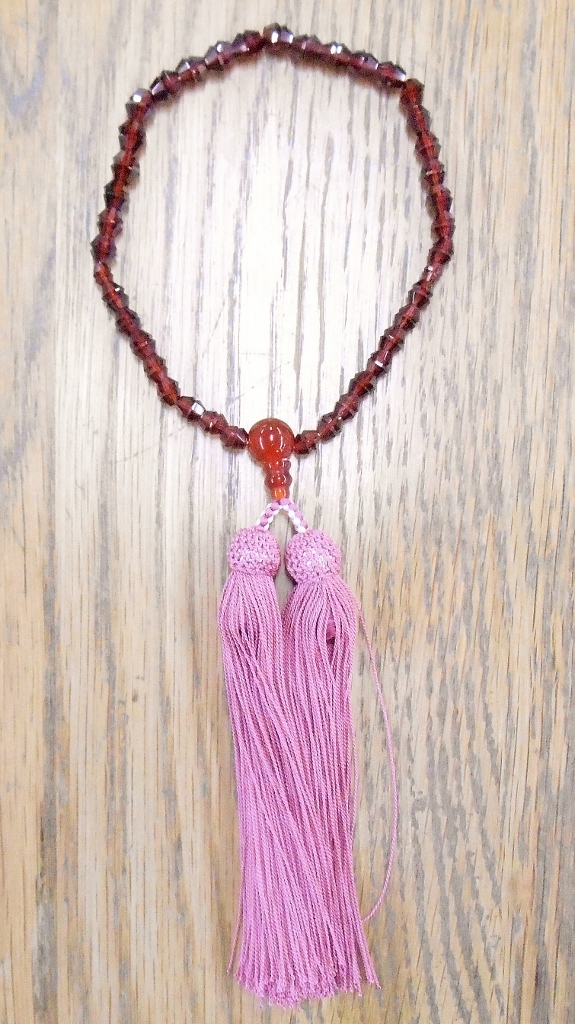 「ネックレスから珠数への仕立直し」の納入実例をHPでご覧になり、おとなり宮城県より長門屋へ足を運んで下さったI様。ネックレスから珠数への仕立直しを複数ご用命いただきました。お客様ご自身が選ばれたそれぞれの房が、出来上がった珠数にとてもお似合いです。