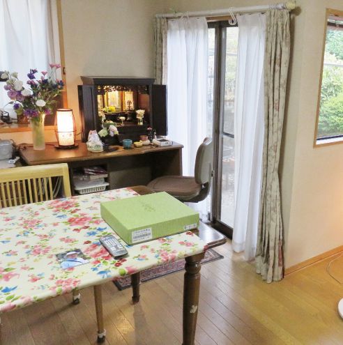 HOME > 事例集 > 仏壇購入 > 【山形市T様】居間の故人の愛した机の上にお仏壇を安置。皆の眼が行き、故人の話に花が咲きます。