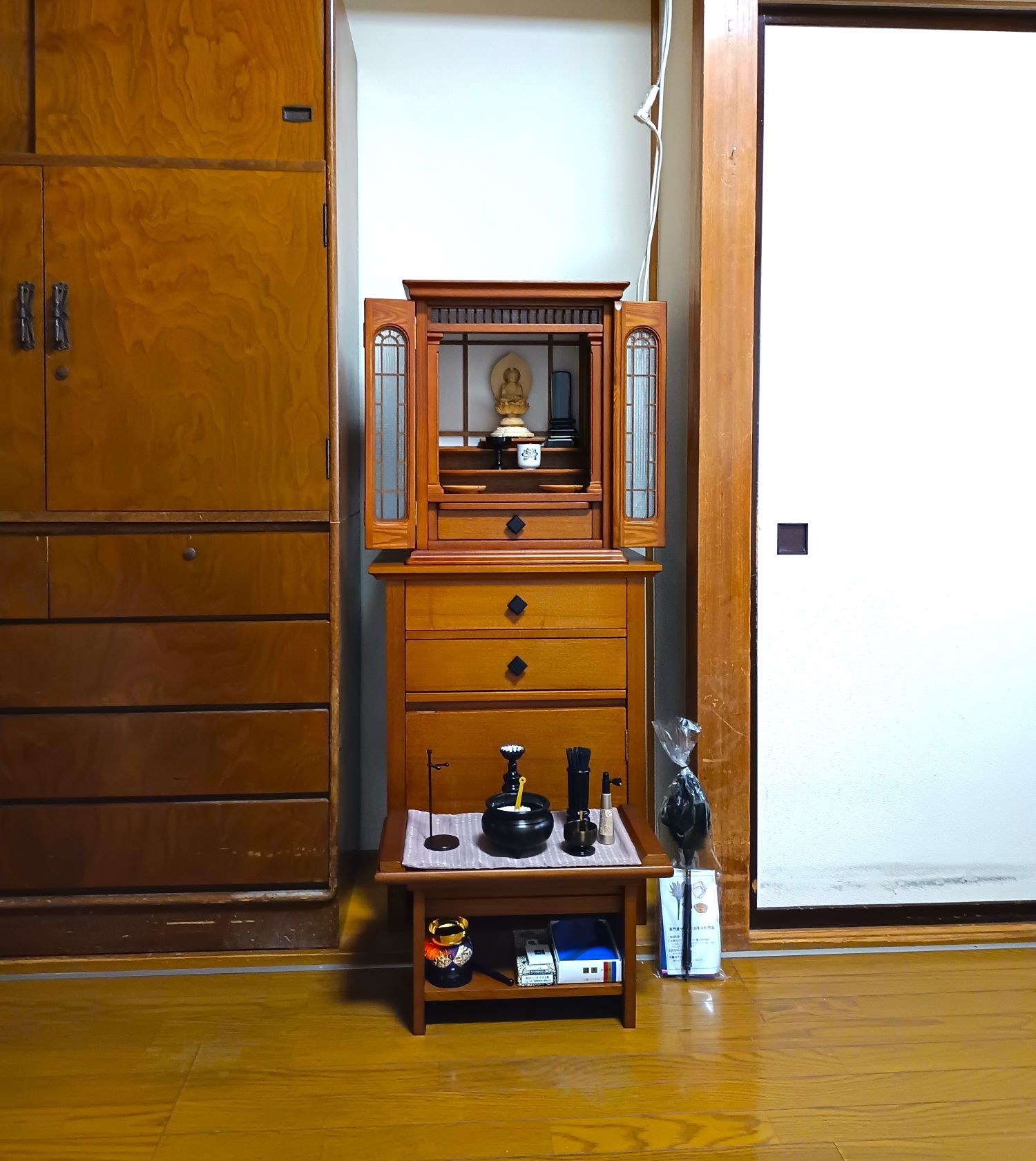 【山形市S様】セットになった上置仏壇と置台ですが、ライフスタイルの変化に合わせてお仏壇と置台を離し、別々に使用できます。
