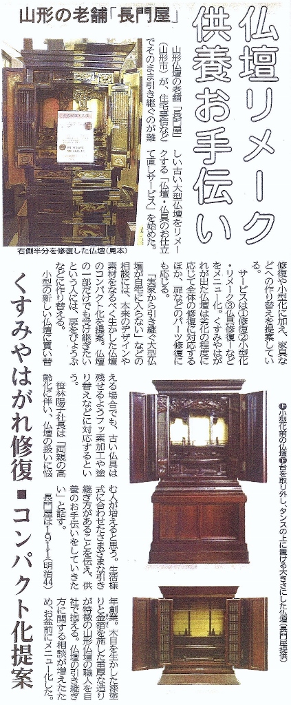 山形新聞さんにご紹介いただきました「お仏壇のお仕立て直しサービス」